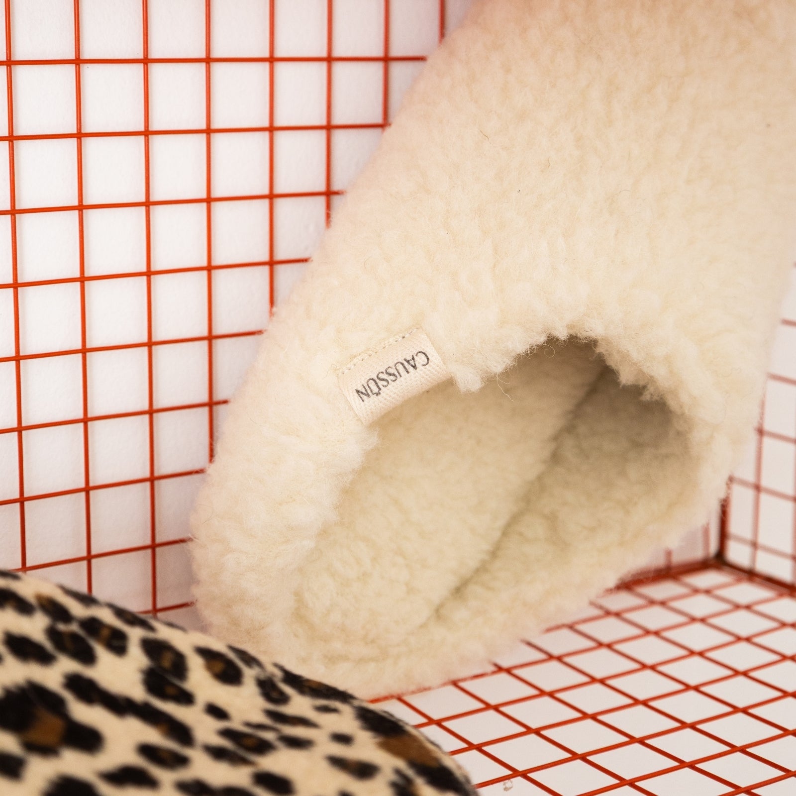 Caussün-Hausschuhe gibt es in einer Reihe stilvoller Farben und Muster. Ausgefallene Drucke wie Leopardenmuster oder Schachbrettmuster verleihen jedem Paar eine einzigartige Note.