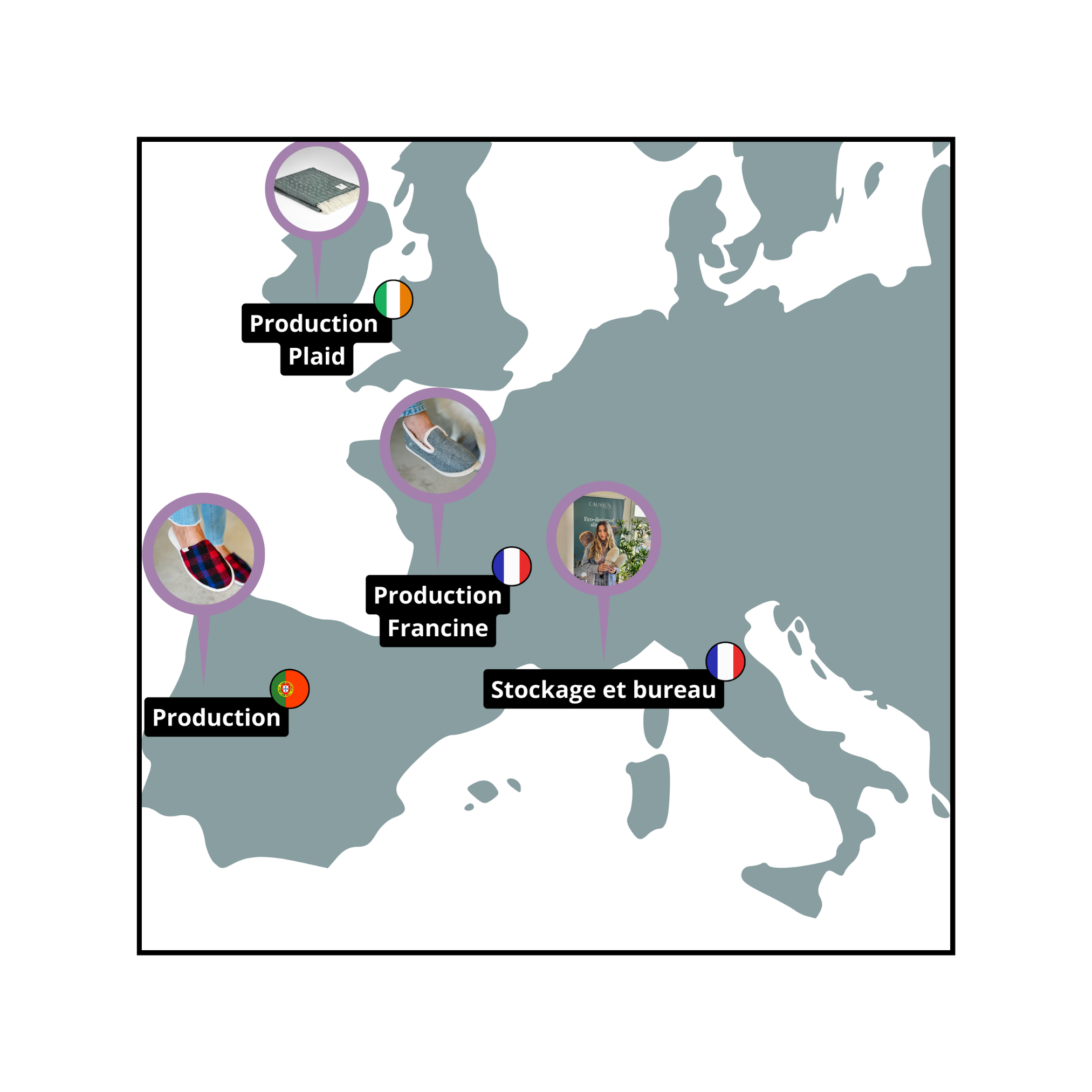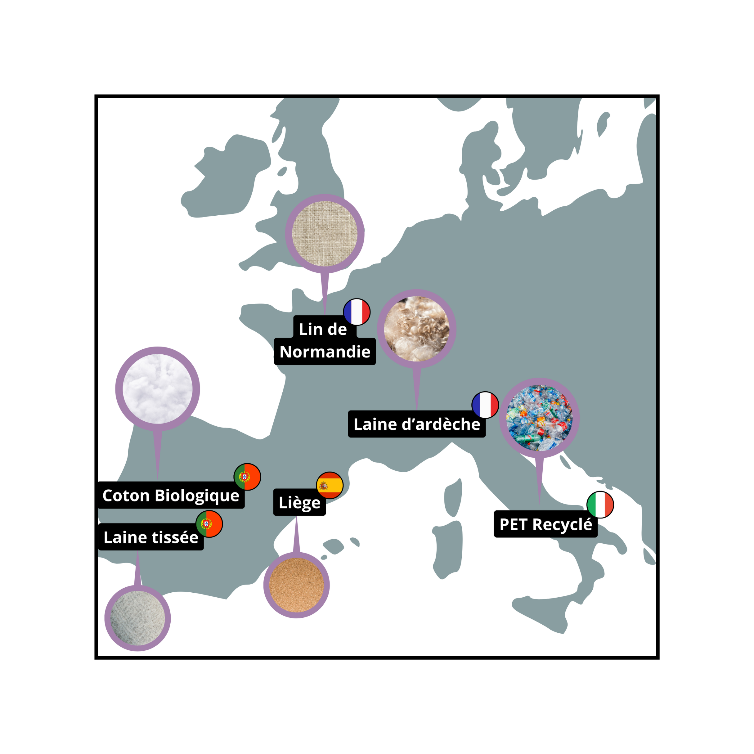 All our raw materials come from Europe from our trusted partners (family business, scoop, suppliers of eco-friendly materials, producers, etc.). In addition, transport is only by rail or road. We say no to air.